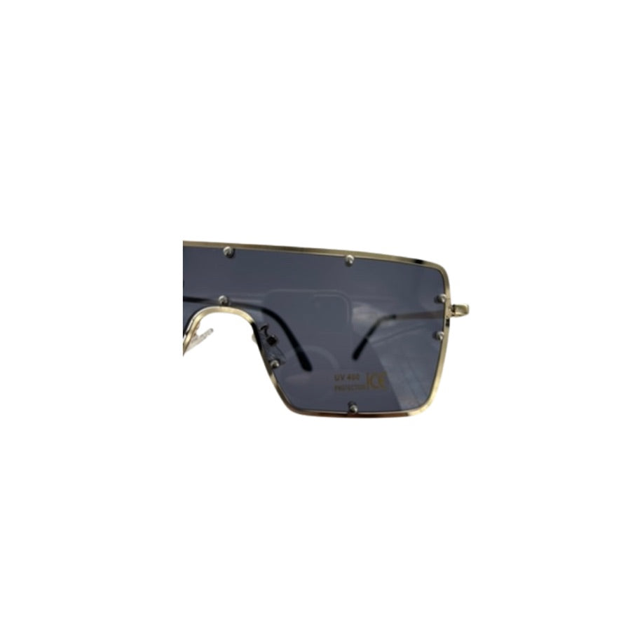 Rectangle Shield Sunglasses Grey Gold - New