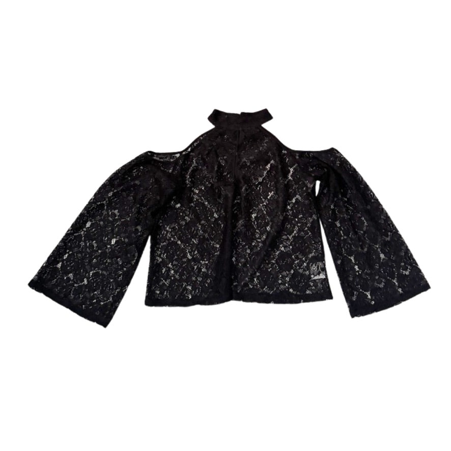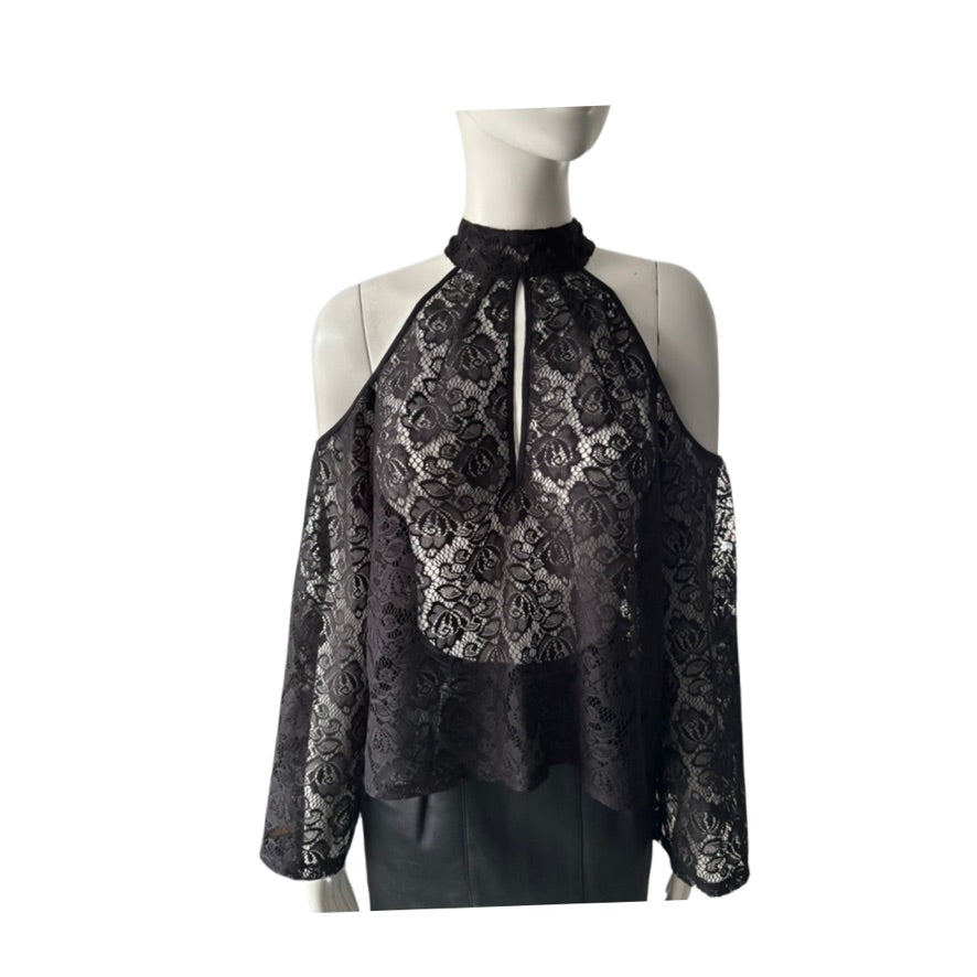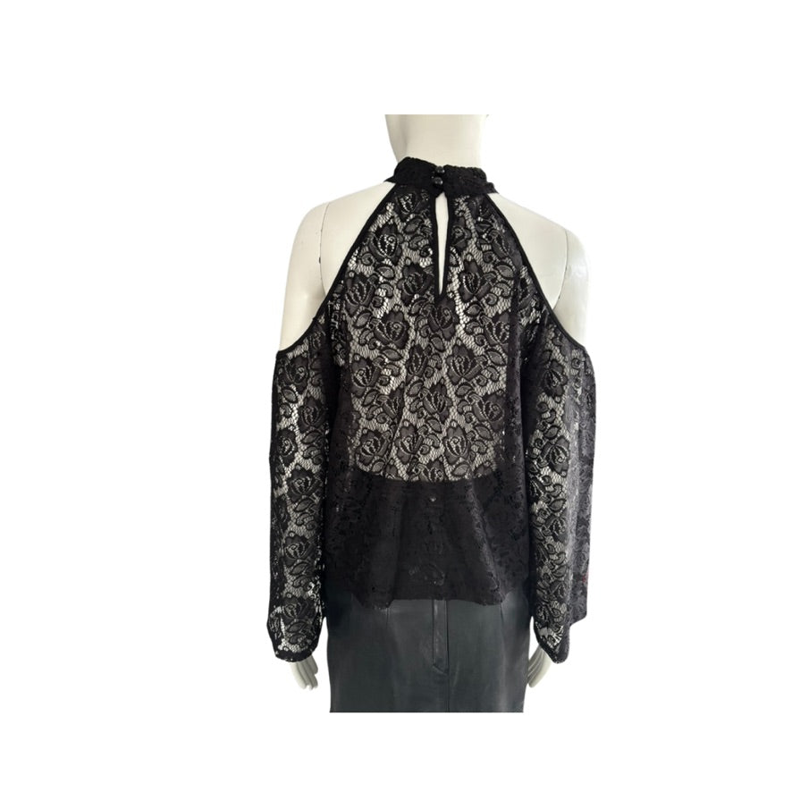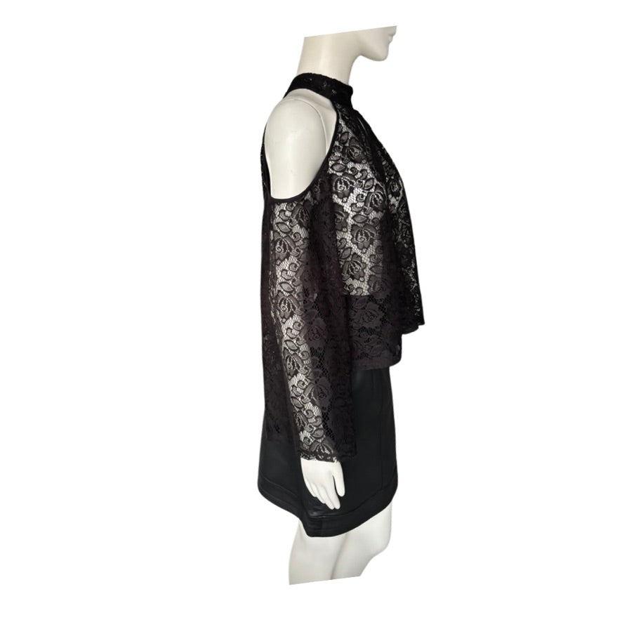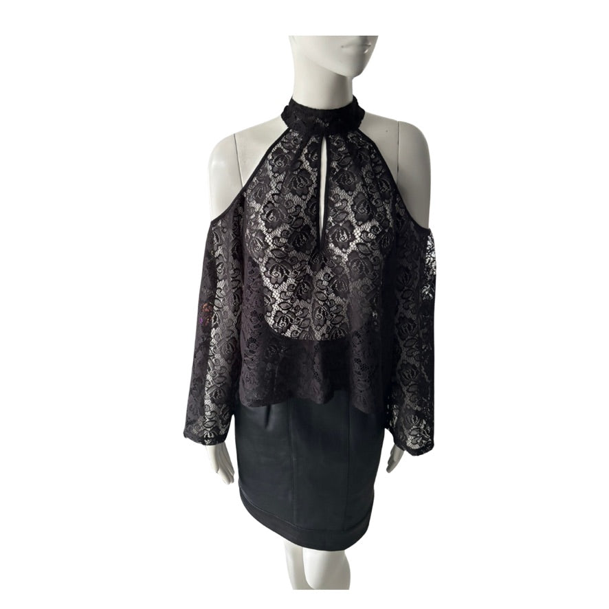 Influence Lace Cold-Shoulder Halter Top Black Size 12 - New