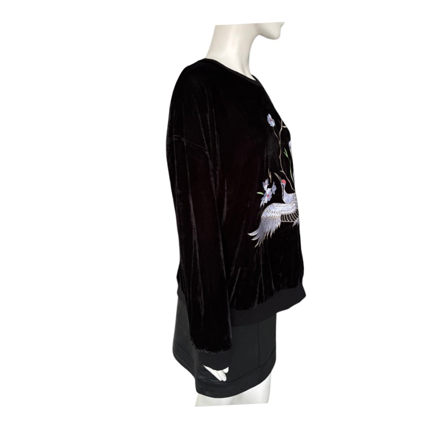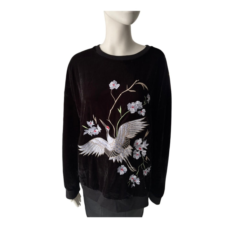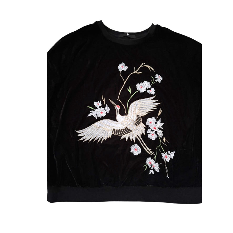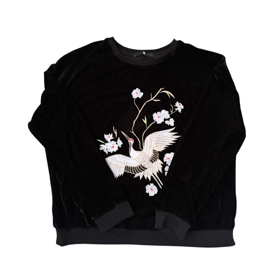 V by Very Embroidered Crane Motif Velvet Sweatshirt Black Size 20 - Preloved