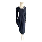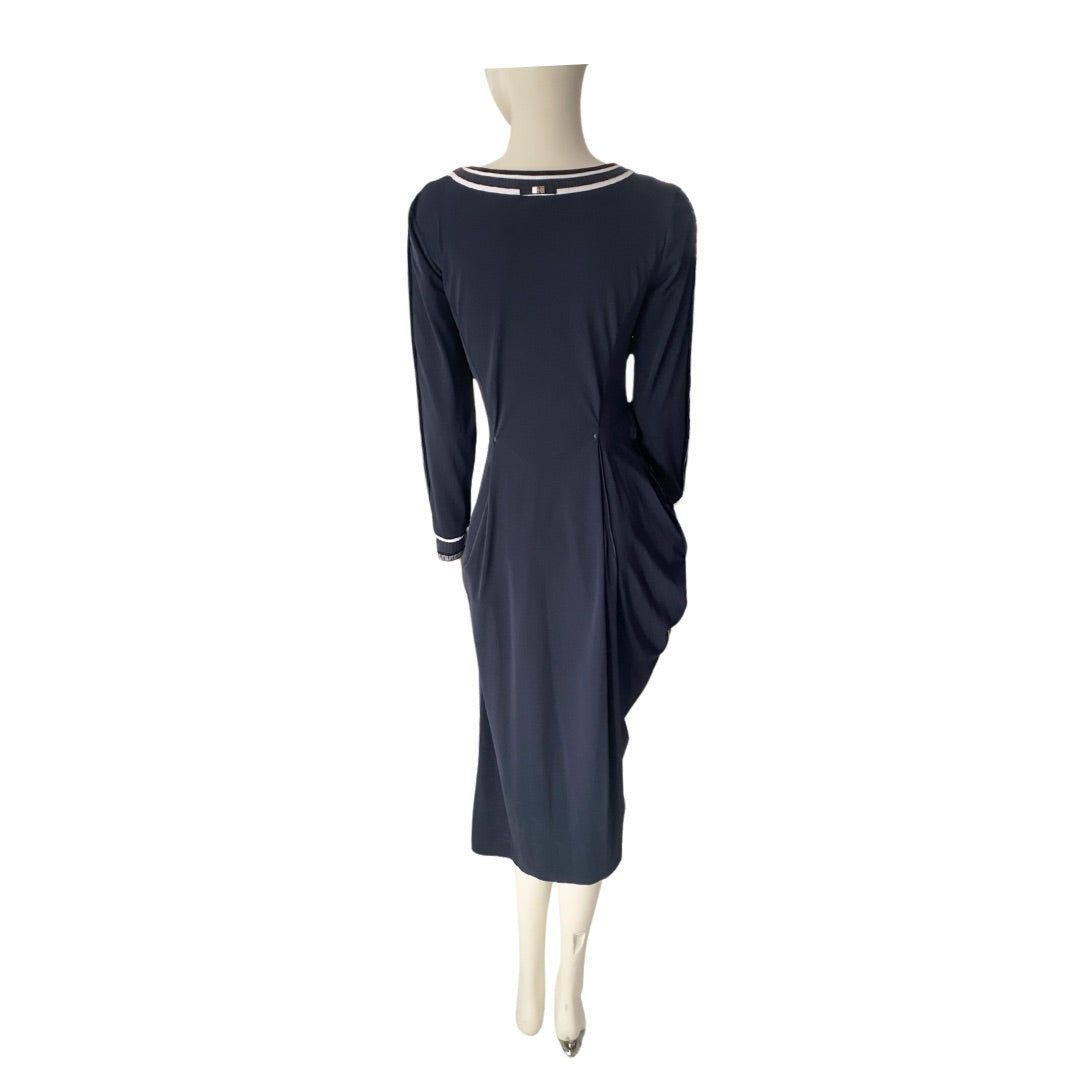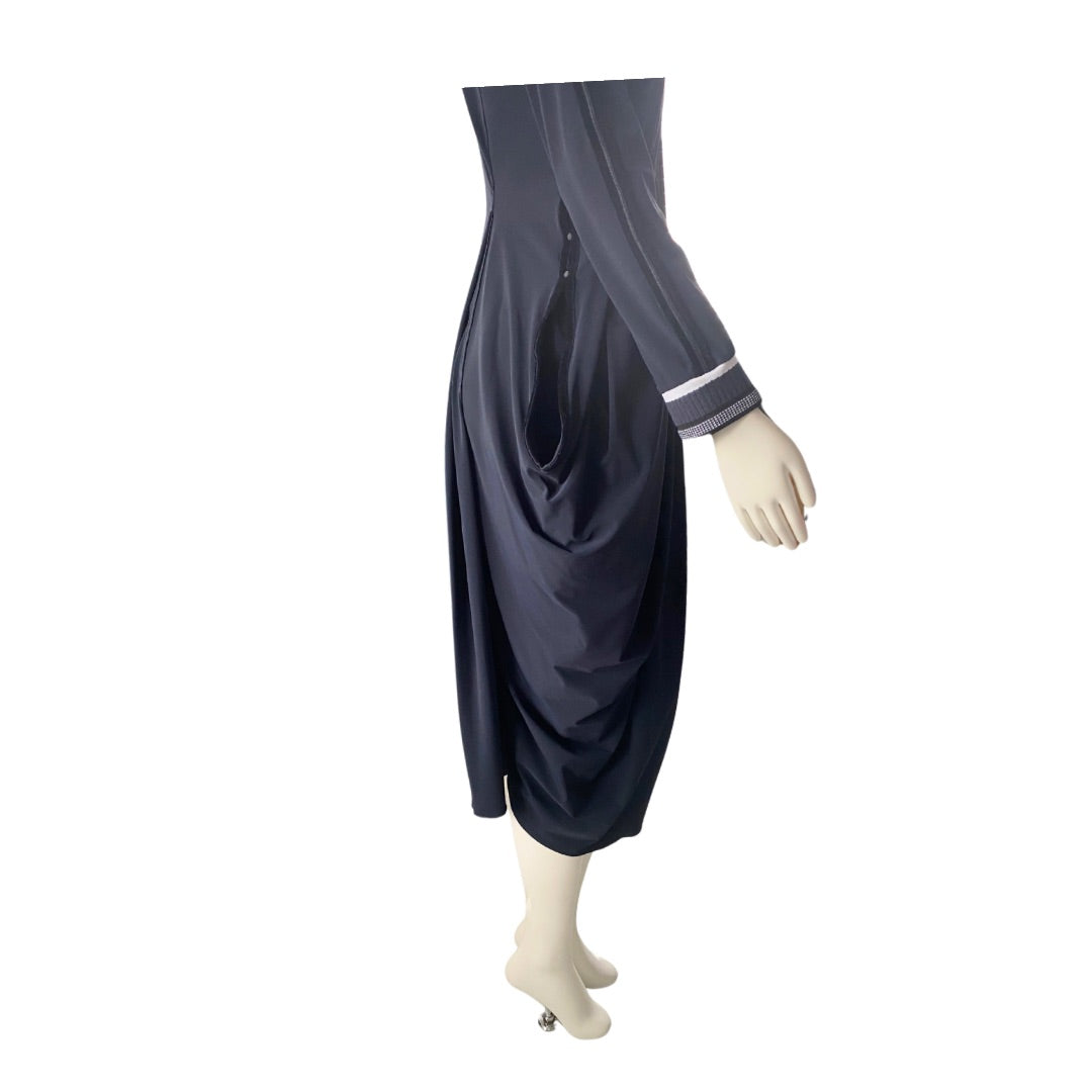 High-Tech Draped Asymmetric Midi Dress Navy SIZE 12 - New