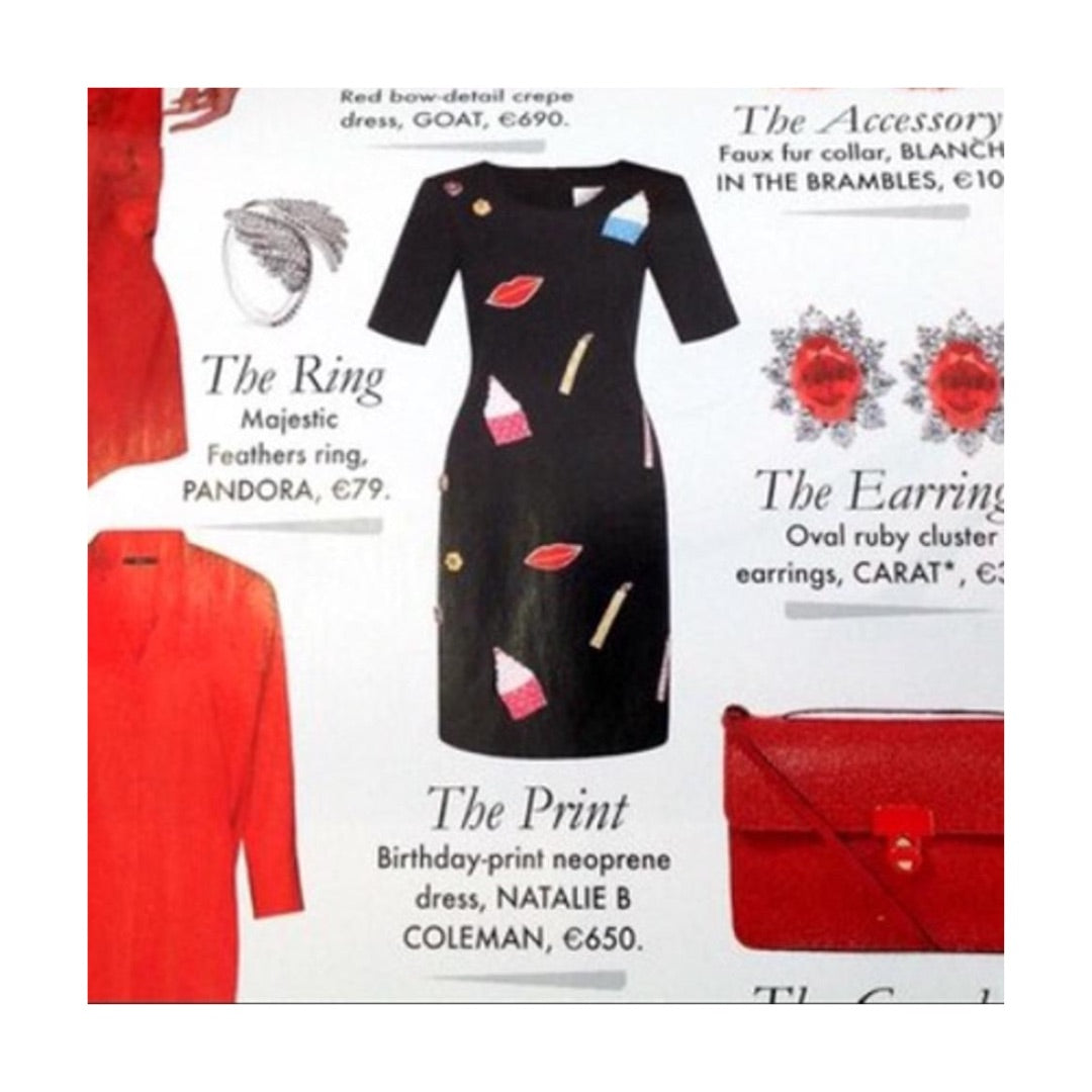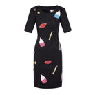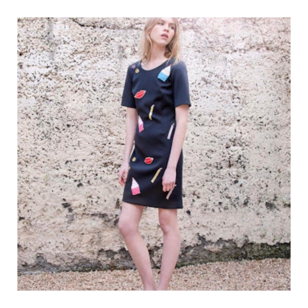 Celebrate your special day in style with the NATALIE B COLEMAN Birthday Dress. This structured neoprene dress features a smooth finish and is adorned with colorful, beaded birthday emblems. With short sleeves and a crew neck, it's the perfect combination of fun and sophistication.