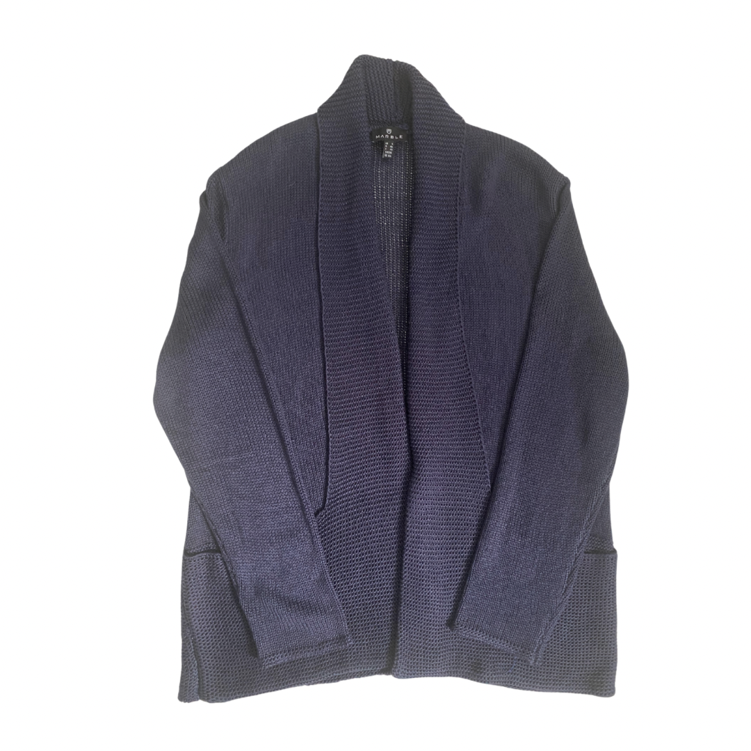 Marble Shawl Collar Knitted Cardigan Navy SIZE S - Preloved