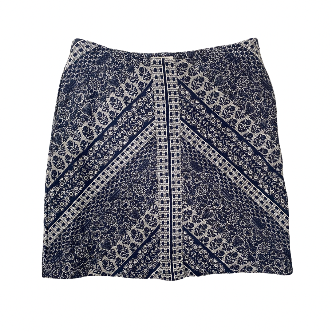 Monsoon Retro Print Mini Skirt Navy SIZE 14 - Preloved