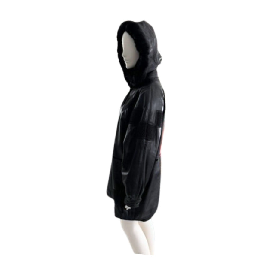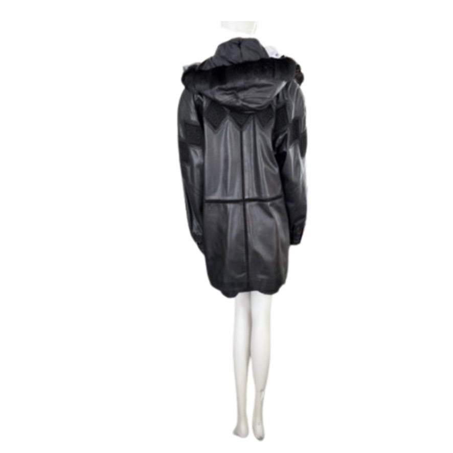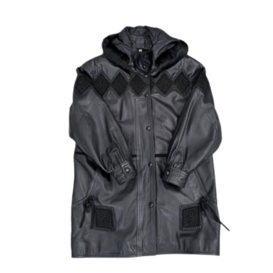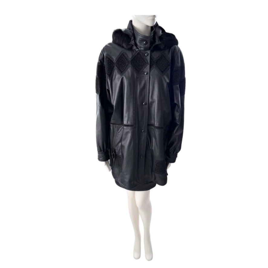 Diamond Appliqué Leather Hooded Parka Black Size 16 - Vintage