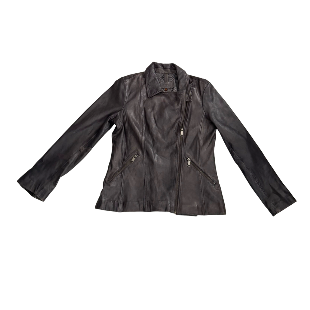 Distressed Leather Biker Jacket Grey Size 18 - Vintage
