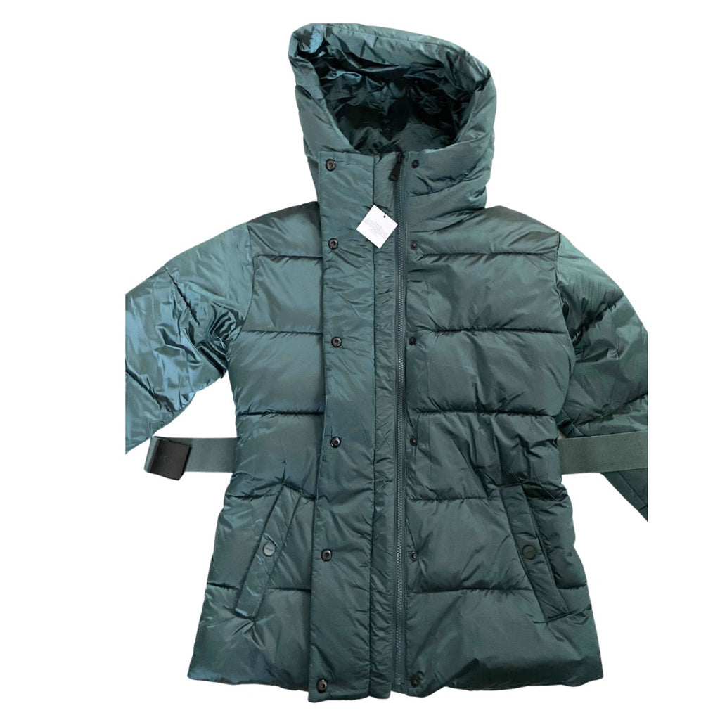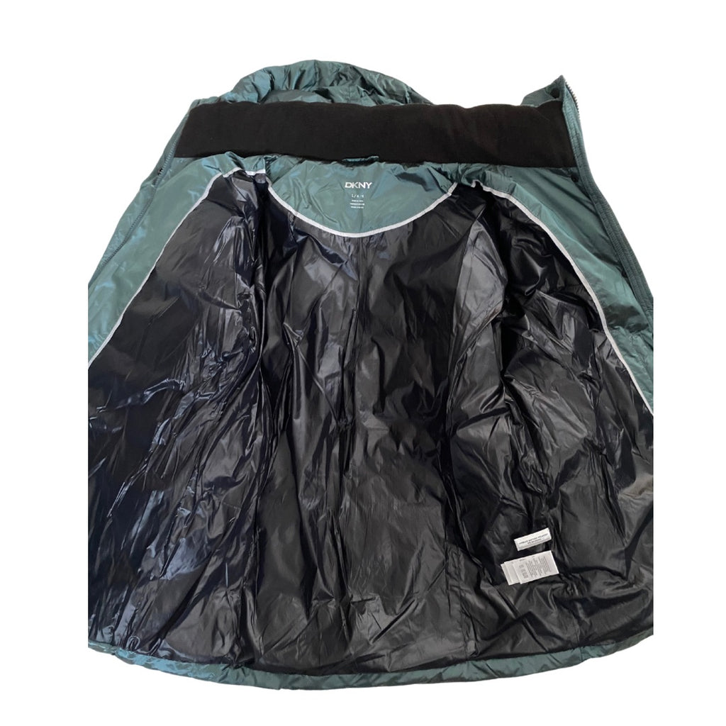 DKNY Damen Metallic Puffer Coat Teal Green - New