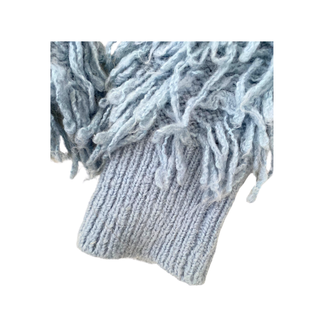 Add a touch of playful texture to your wardrobe with this powder blue shaggy cardigan. The soft, voluminous fringe detailing brings a whimsical charm, making it a standout piece for any outfit. The cozy knit base ensures warmth while the shaggy finish adds a layer of depth and movement. Perfect for those who love to mix comfort with statement style, this cardigan pairs beautifully with a simple tee and jeans or over a sleek dress for a more daring look.