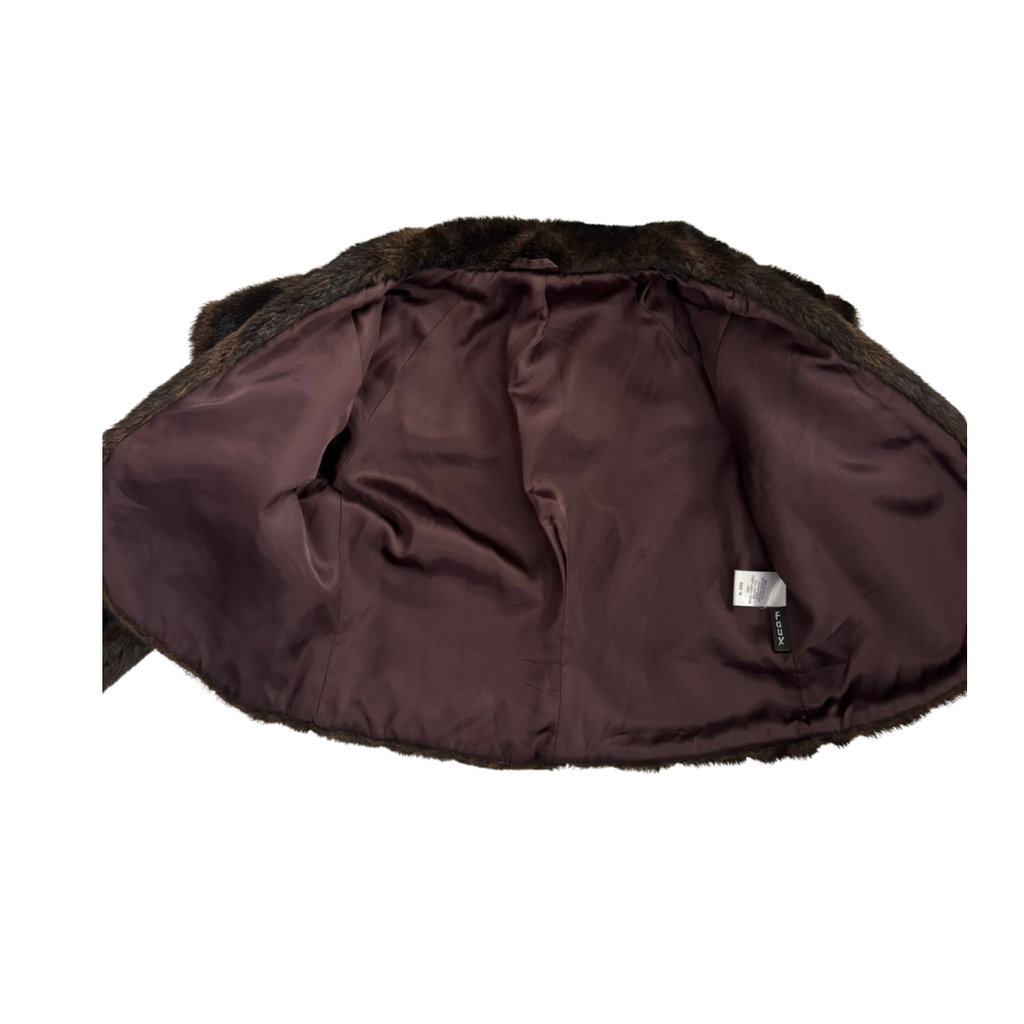 Shawl Collar Faux Fur Cropped Coat Brown Size 16 - Preloved