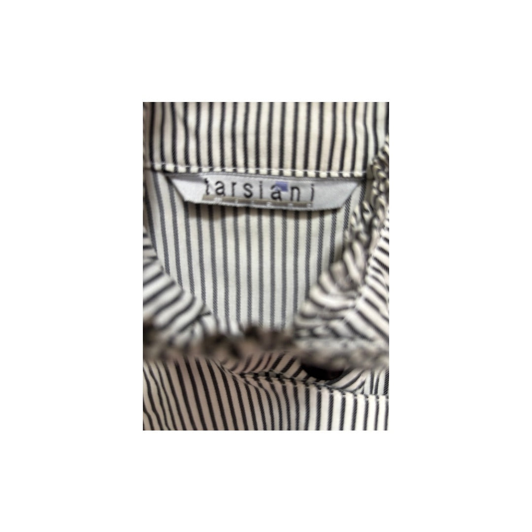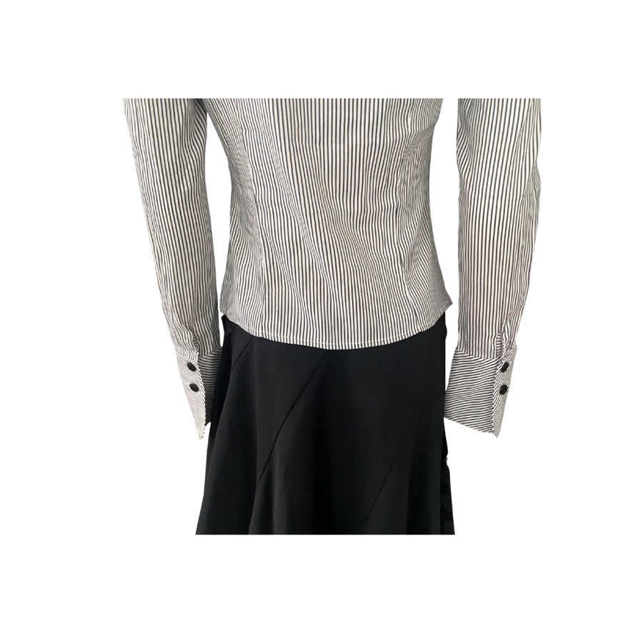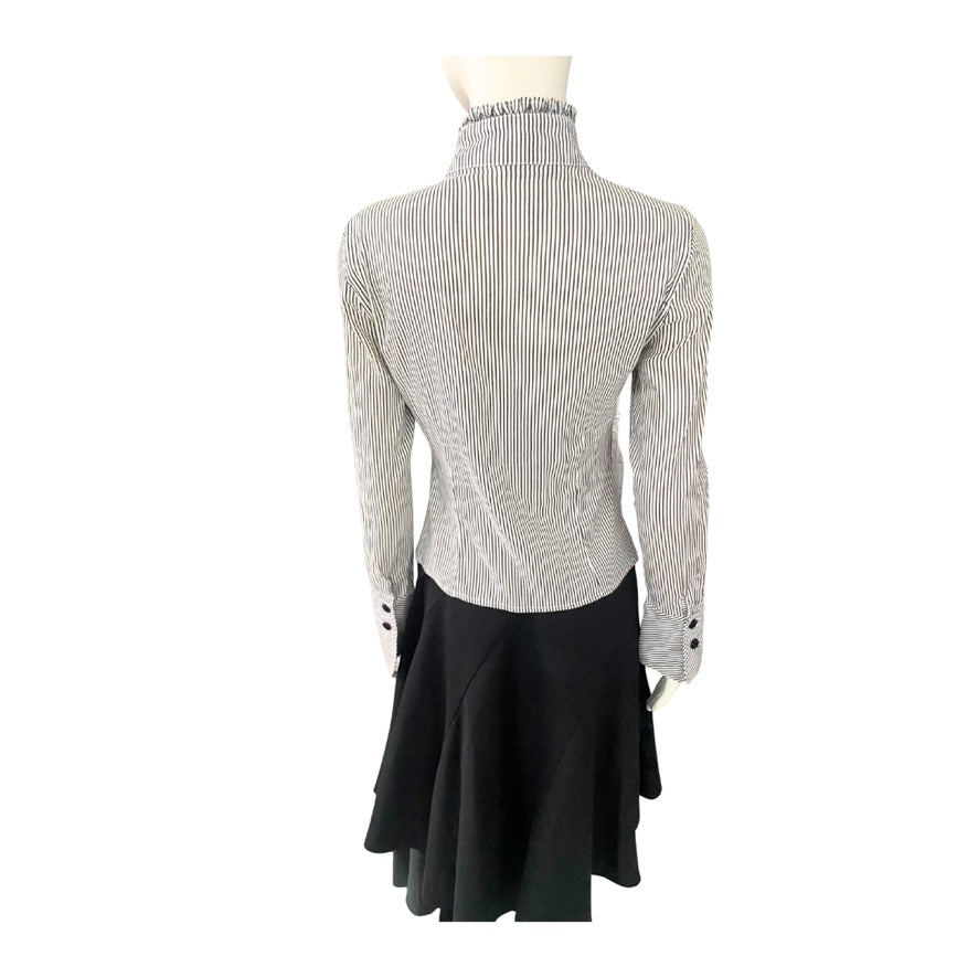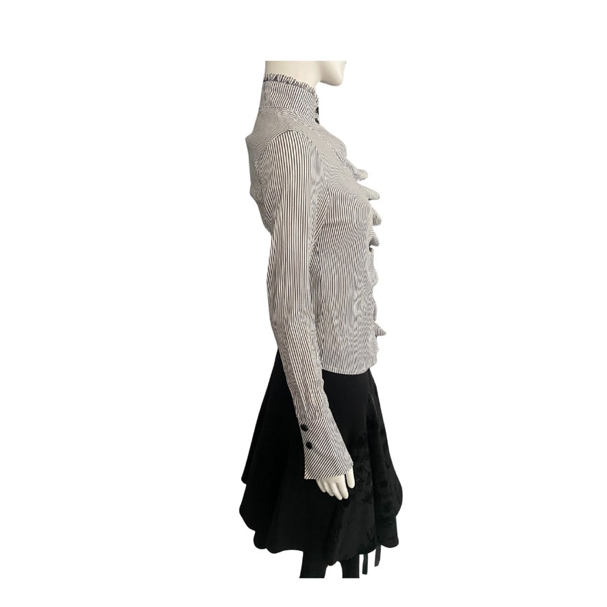 Asymmetric High Neck Ruffle Striped Shirt Black White Size S – Vintage