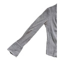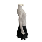 Add a dash of drama to your shirting with this vintage Vivienne Westwood-esque striped button-down. Detailed with sculptural ruffles and offset buttons, it plays with symmetry in a way that feels both tailored and theatrical. The monochrome palette keeps it versatile, while the high neck and elongated cuffs make it a standout choice for desk-to-dinner styling.